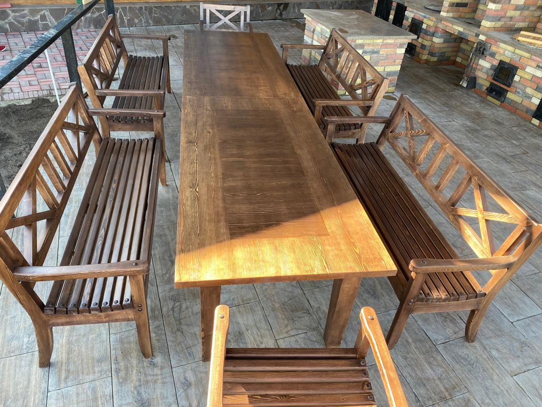 Мебель может иметь натуральную текстуру дерева, лаконичный современный дизайн или декоративную отделку. Её можно окрашивать, тонировать, лакировать или комбинировать с текстилем, подушками и аксессуарами, создавая стильное пространство на открытом воздухе.